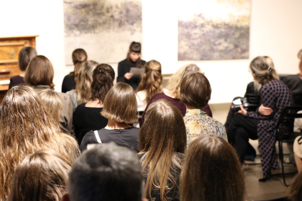 Dzejas meistardarbnīcas vakara grupa: Džena Andersone, Kristīne Jučkoviča, Pauls Kauķis, Ilze Kuzmicka, Meldra Ķemere, Uvis Leskavnieks, Valters Liberts, Evelīna Mūrniece, Anta Skara, Madara Stāde, Sandra Strēle, Lea Vinks, Alise Zālīte.
